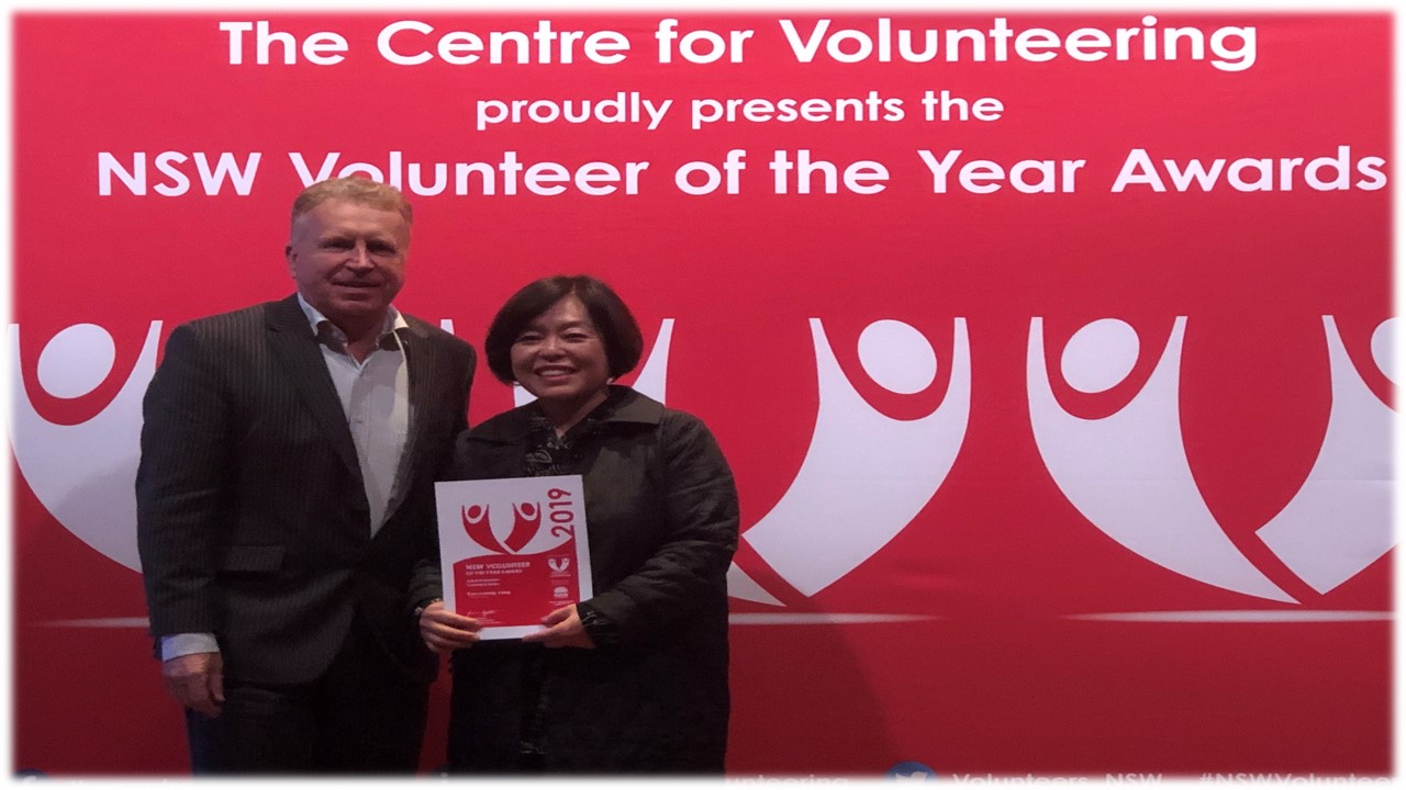 최근 CASS 한인 시니어그룹에서 봉사활동을 하고 있는 장은정씨는 2019년NSW 올해의 자원봉사자상(2019 NSW Volunteer of the year awards) 후보에 올랐습니다. 아쉽게도 본상을 받지는 못했지만, 지난 8월 29 파라마타 RSL Auditorium 에서 글린엘모어(Glenn Elmore) 캠블랜드 부시장으로부터 올해의 자원봉사자 인증서를 받았습니다.