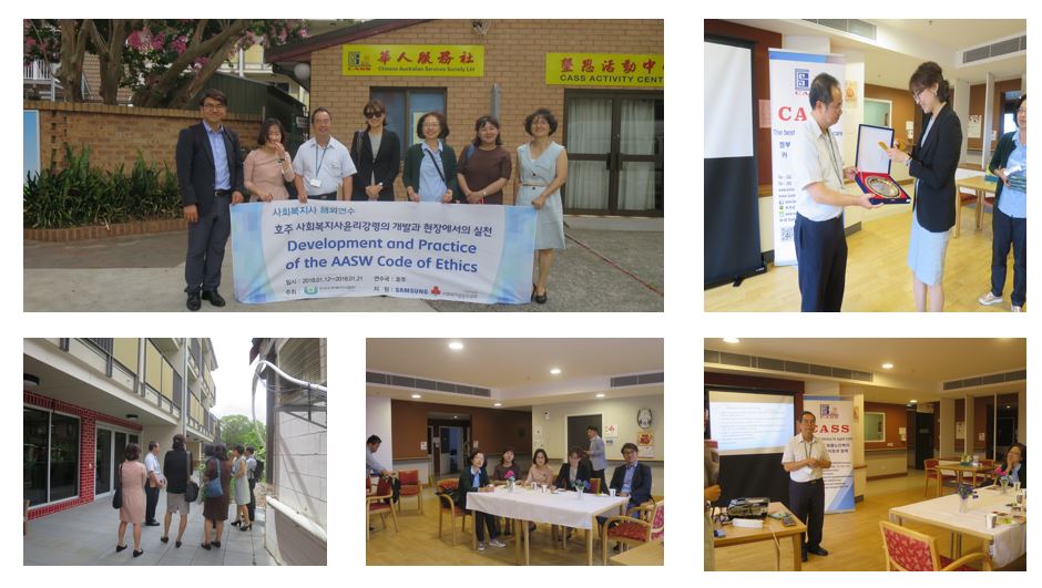 한국의 사회 복지사 해외 연수 중 CASS 방문 한국 사회 복지사 해외 연수 프로그램 중 “호주 사회 복지사 윤리 강령의 개발과 현장에서의 실천” 이란 주제로 저희 CASS 에 방문을 해 주셨습니다. Ivan과 Rachel이 함께 하는 CASS tour와 호주 시스템 설명이 있었고, Q/A 시간을 갖었습니다.